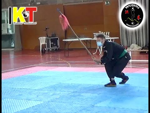 Forma con Lanza Bawang de Hung gar, realizada por Daniel Fernández alumno del CLUB WUSHU MONTNEGRE, durante el trascurso del II OPEN DE CATALUNYA DE KT en Tordera (Barcelona) el 21 de noviembre de 2021.