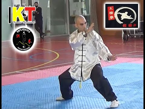 Forma 36 Yang Yi (Tai Chi Chuan), realizada por Xavi Munné del WUSHU KAIMEN de Sant Pol, durante el trascurso del II OPEN DE CATALUNYA DE KT en Tordera (Barcelona) el 21 de noviembre de 2021.